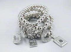 Charm Bracelet Silver Puffy Heart Chain for Women