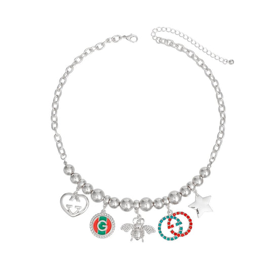 Charm Necklace Silver Puffy Heart Chain Set Women
