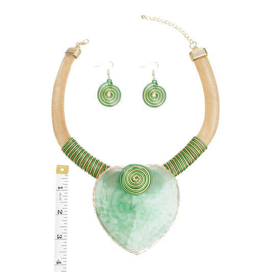 Collar Gold Pearl Stone Helix Chain Set for Women