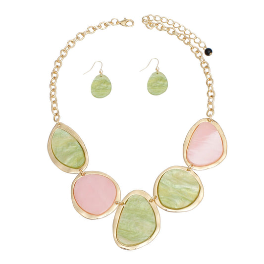 AKA Necklace Pink Green Oval Swirl Set for Women