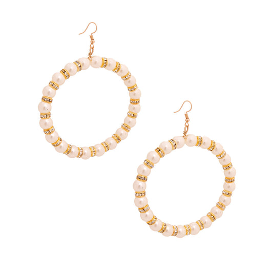 Cream Pearl Pave Round Earrings