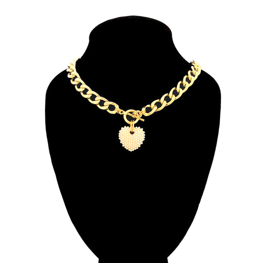 Cream Pearl Heart Pendant Choker