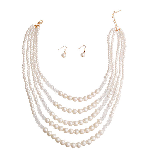 Cream Pearl Multi Strand Necklace Set