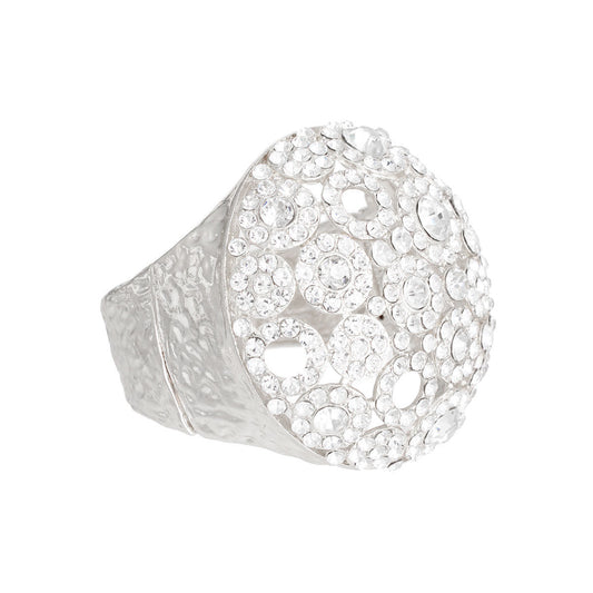 Cuff Domed Silver Round Rhinestone Chunky Bracelet