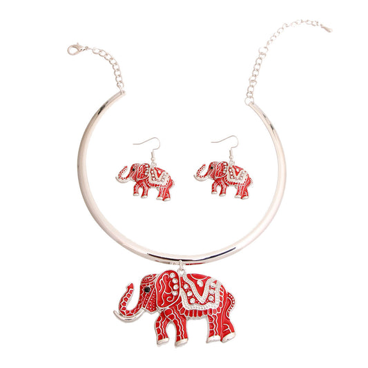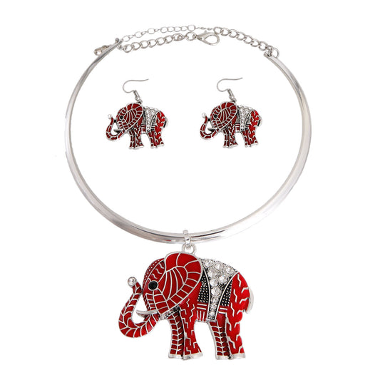 DST Red Elephant Rhinestone Fish Hook Earrings