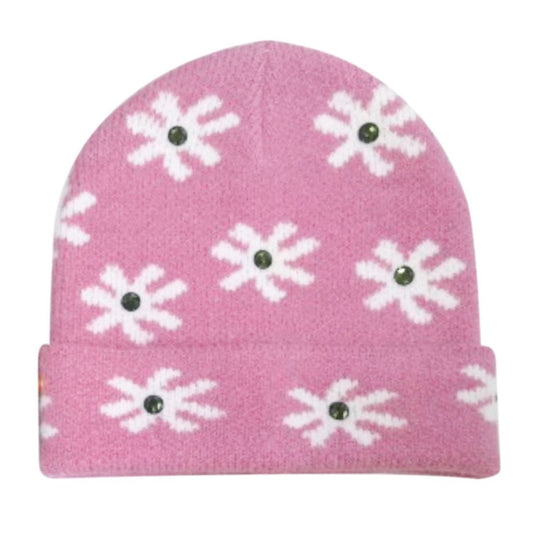 AKA Sorority Pink Green Flower Knit Beanie Hat