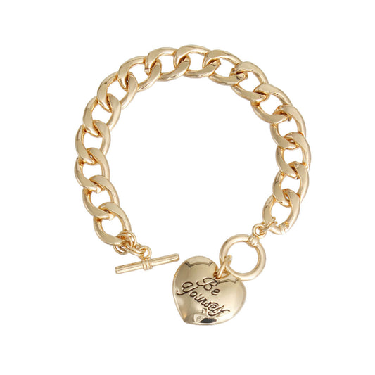 Gold Bead 2 Pcs Heart Charm Bracelets