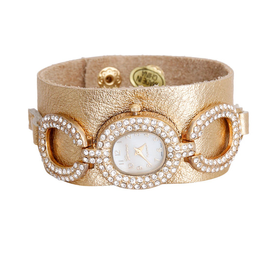 Sold outGold Faux Leather Snap Cuff Watch