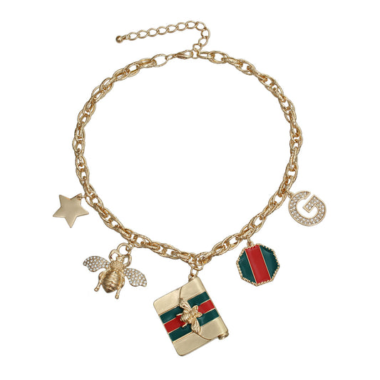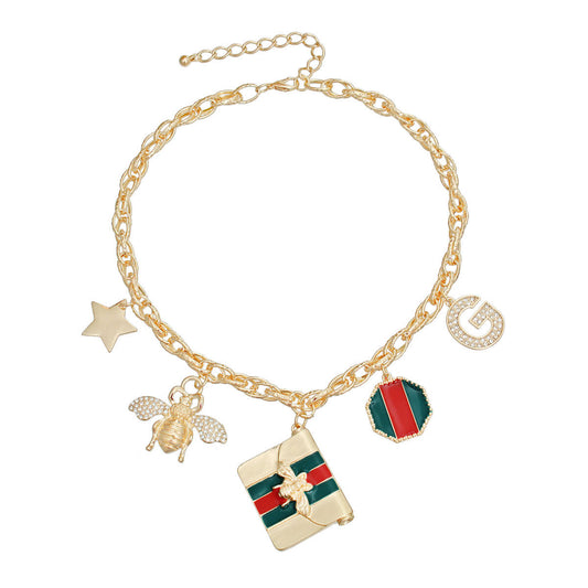 Gold Red and Green Designer Charm Bracelet