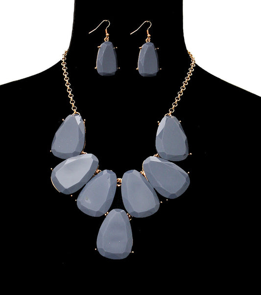 Sold outGray Beads Statement Necklace Set