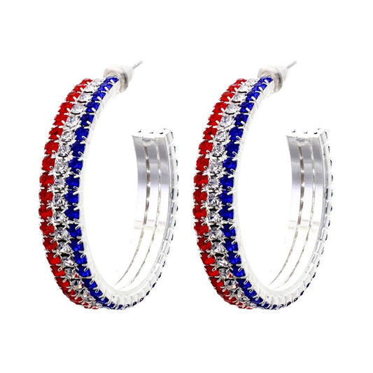 Sold outAmerican Flag 35mm Rhinestone Hoops