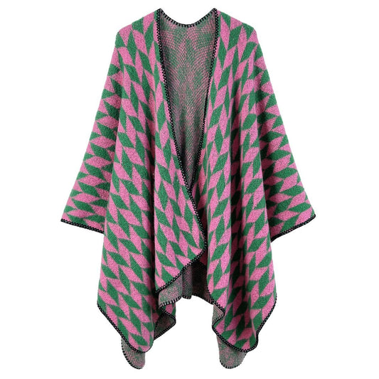 Kimono Cardigan Poly Pink Green Geo Knit for Women
