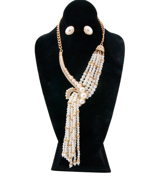 Asymmetric Pearl and Rhinestone Knot Necklace Set