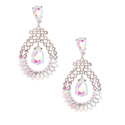 Aurora Borealis Dangle Teardrop Rhinestone Earrings