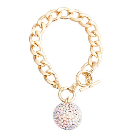 Aurora Borealis Pave Ball Toggle Bracelet