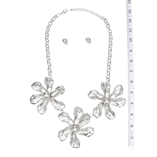 Necklace Polished Silver Chunky Flower Set Women