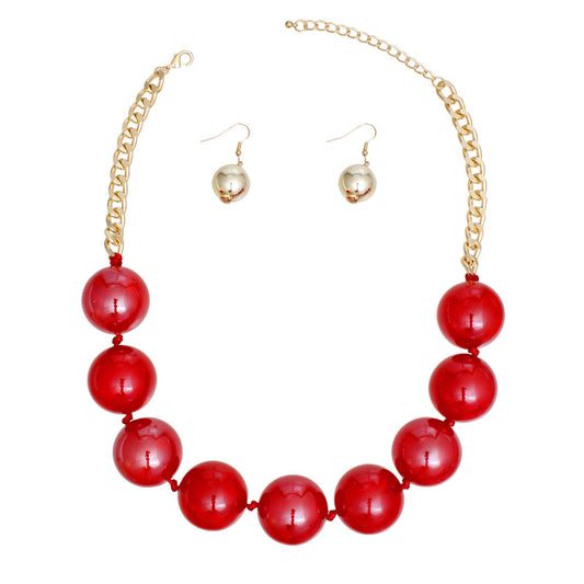 Necklace Red Marble Jumbo Ball Bead Set