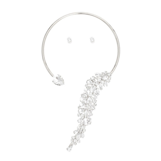 Necklace Silver Crystal Drop Choker for Women