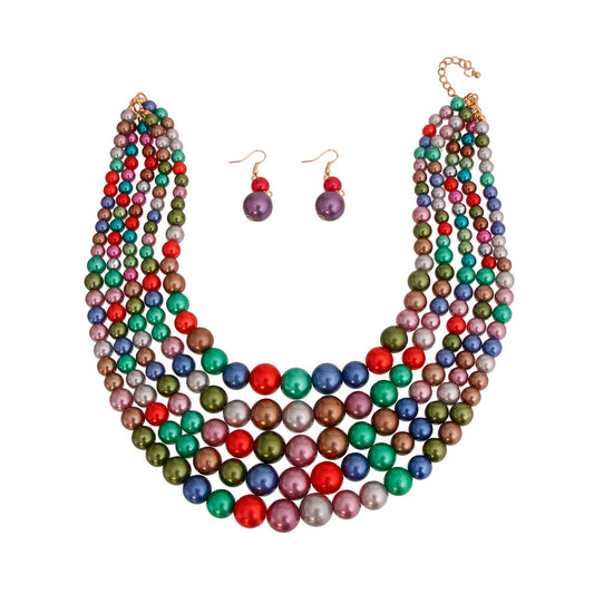 Pearl Necklace Dark Multicolor 5 Strand Set Women