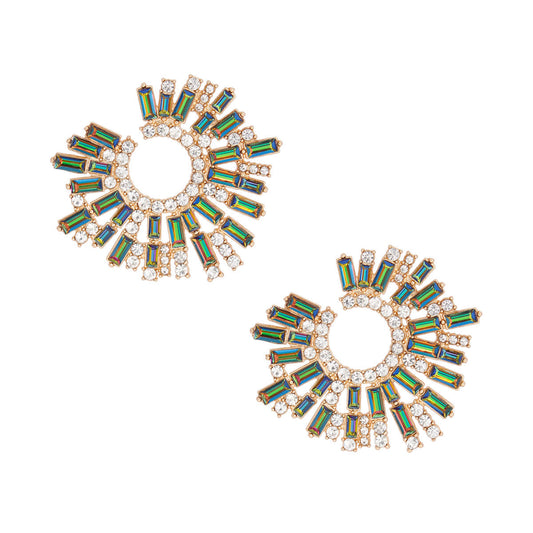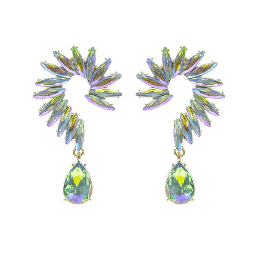 Pink Green iridescent Crystal Flower Hinge Cuff