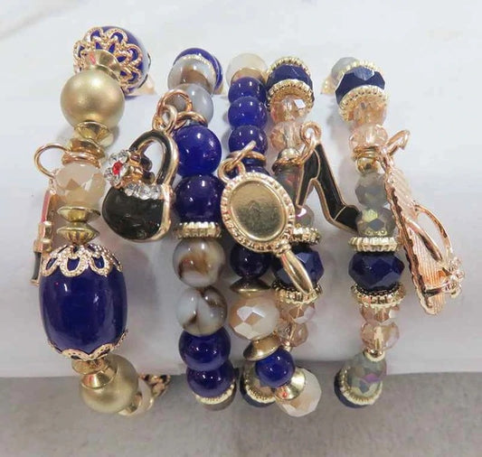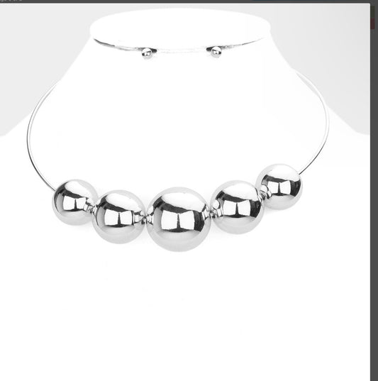 Beaded Silver Teardrop Pendant Double Necklace Set