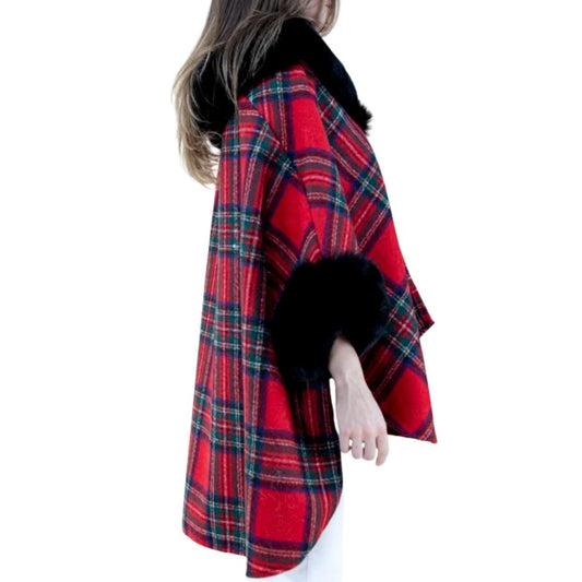 Sold outRed Scotch Plaid Fur Cape