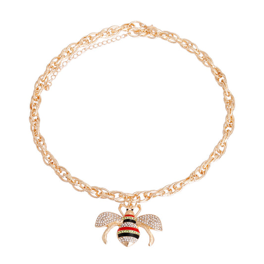 Red Striped Bee Chain Link Necklace
