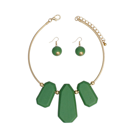 Bib Green Chunky Wood Gold Rigid Collar Necklace