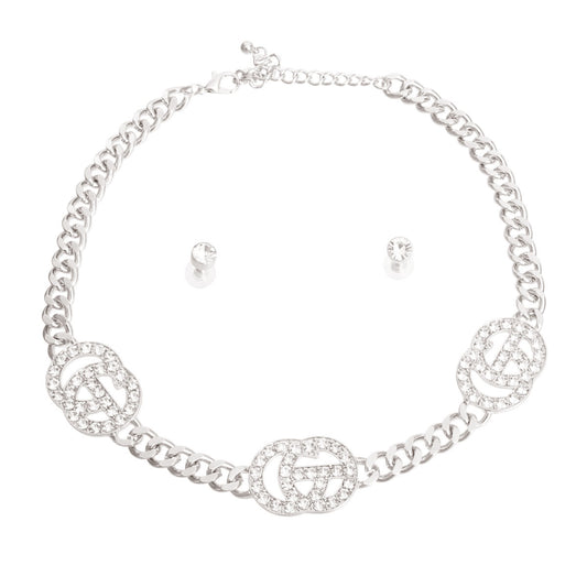 Silver and Rhinestone Designer GG Chain