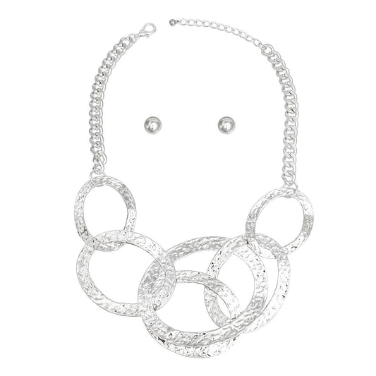 Bib Modernist Chunky Silver Oval Rings Necklace