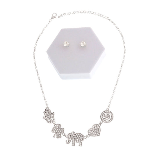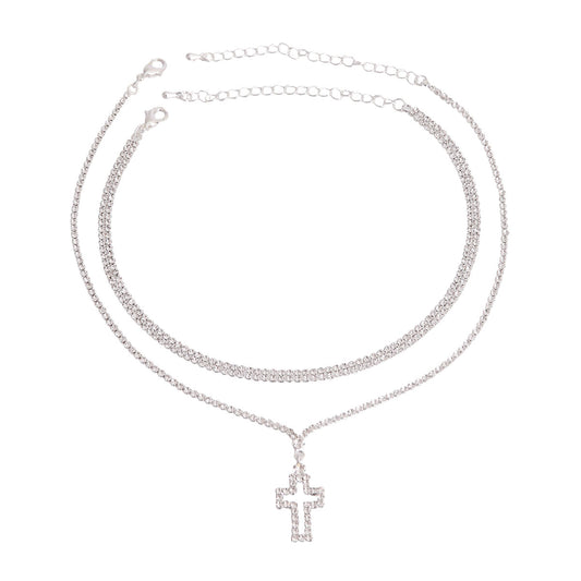 Sold outSilver Rhinestone Cross 2 Choker Set