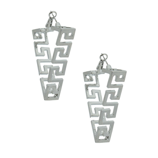 Sold outSilver Triangle Greek Key Hoops