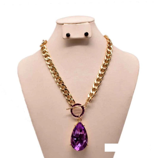 Teardrop Dark Fuchsia Stone Crusted Open Hoops