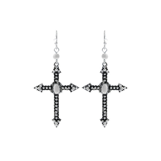 White Burnished Silver Cross Earrings