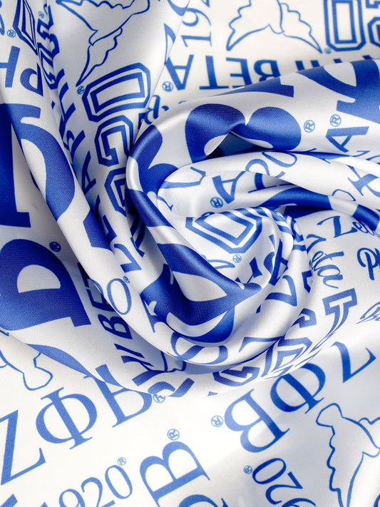 ZPB Sorority Blue and White Silky Square Scarf 70 cm