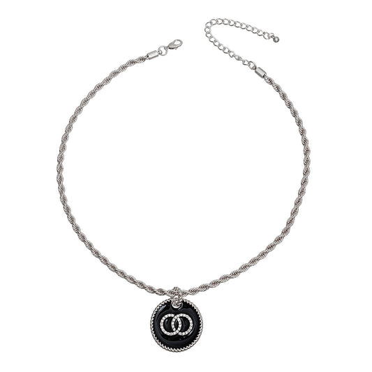 Black Infinity Pendant Silver Twisted Chain