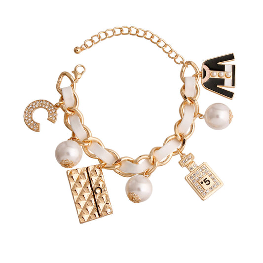 Bracelet White Woven Gold C No 5 Charms Women