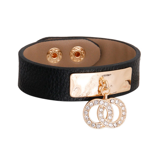 Sold outBlack Leather Designer Snap Bracelet
