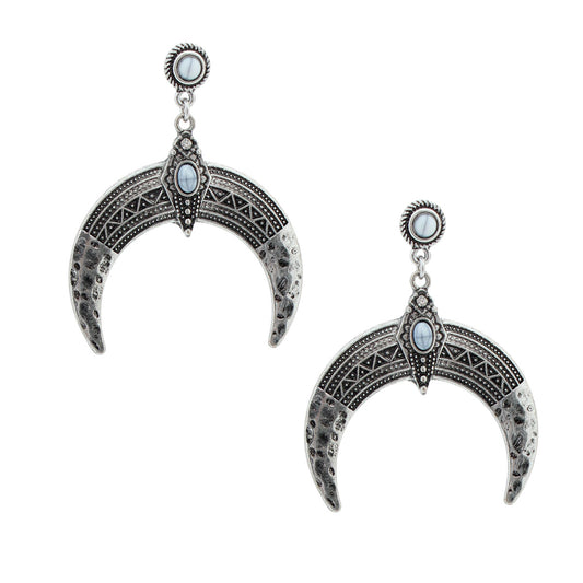 Engraved Burnished Silver Arch Earrings