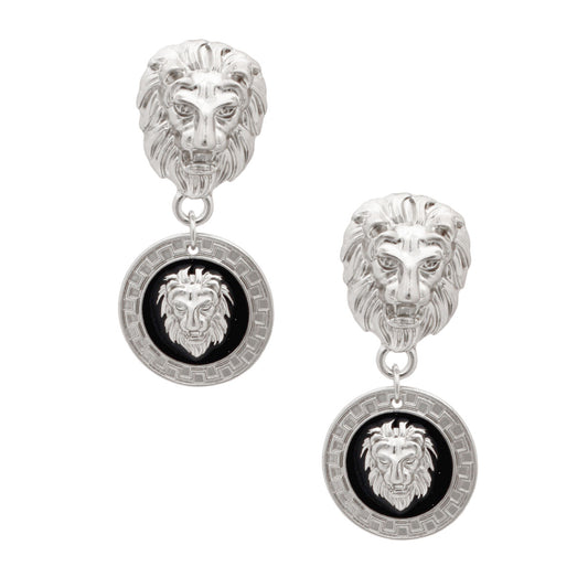 Silver and Black Designer Lion Earrings