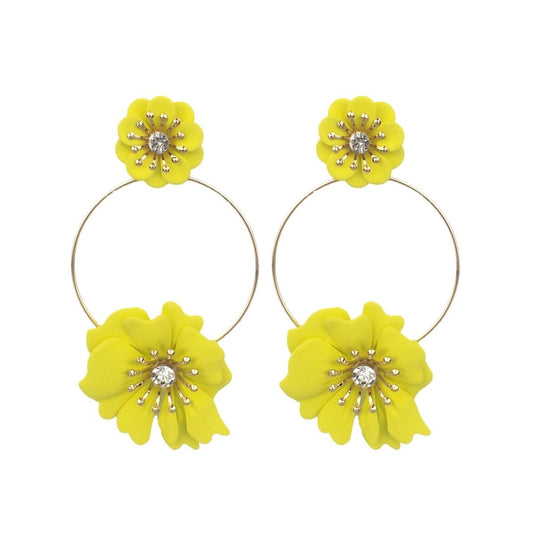 Yellow Coated Flower Drop Hoop Earrings