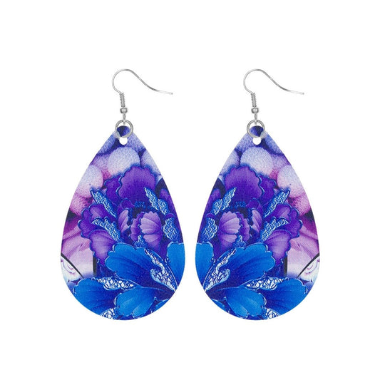 Various Blue Purple Printed Teardrop Earrings