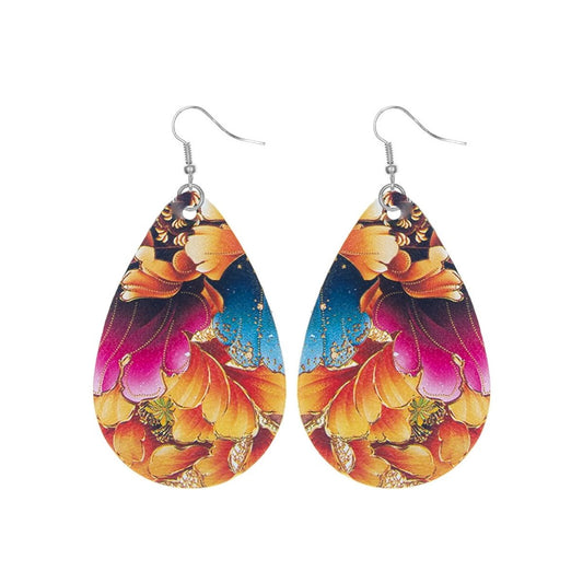 Various Flower Printed Teardrop Earrings