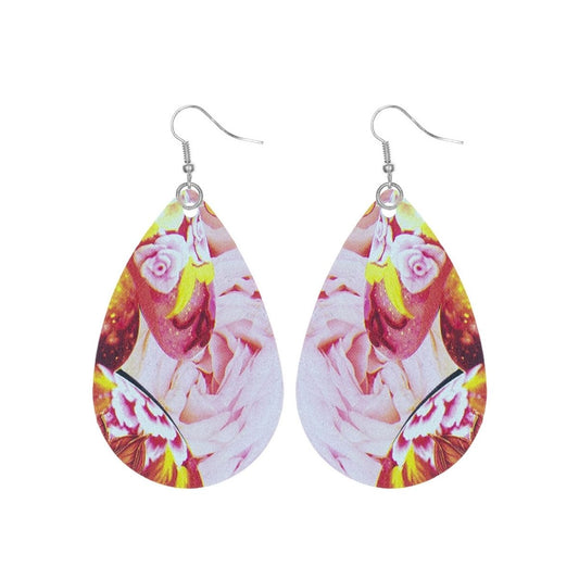 Pink Rose Printed Teardrop Earrings
