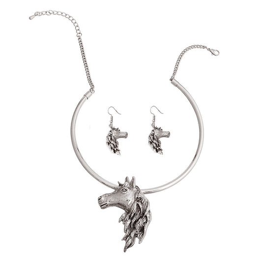 Burnished Silver Horse Necklace
