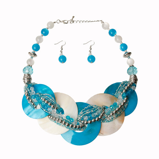 Blue and White Beaded Disc Necklace Set