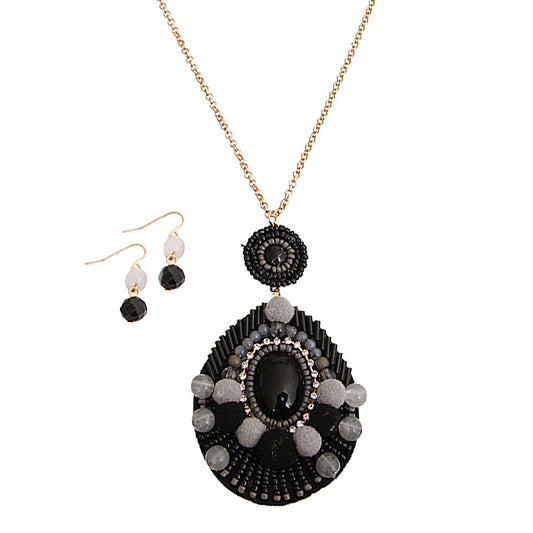 Sold outBlack Stone Drop Necklace Set
