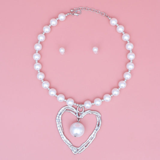 Toggle Gold Patchwork Heart Chunky Pearl Necklace
