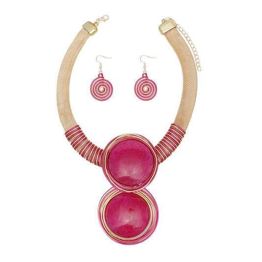 Pendant Pink Druzy Stone Wire Tribal Necklace