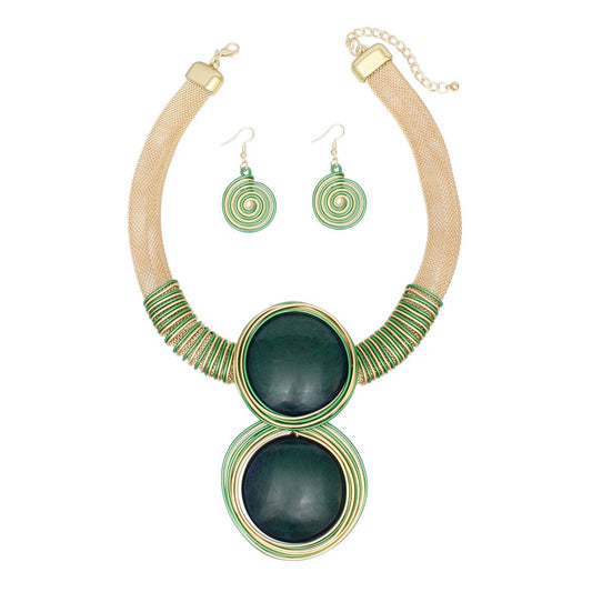 Pendant Green Druzy Stone Wire Tribal Necklace